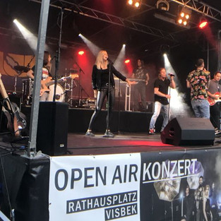Ausgelassene Stimmung herrschte am Freitagabend auf dem Rathausplatz in Visbek. Beim fast schon traditionellen August-Open-Air heizte die Band „Das Wunder“ den mehreren hundert Zuschauern mit Songs aus 40 Jahren deutscher Popgeschichte ein. Mit dabei waren Klassiker von Udo Lindenberg und Marius Müller-Westernhagen, aber auch aktuelle Charterfolge von Interpreten wie Andreas Bourani und Revolverheld.
