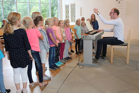 Am Dienstagabend probten die "Ragazzi" (Kinderchor) erstmals gemeinsam mit den Erwachsenen. Fotos: Hermes